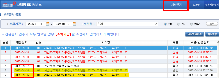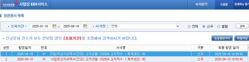 → 고지년월 '2025.04'로 설정 후 재신청