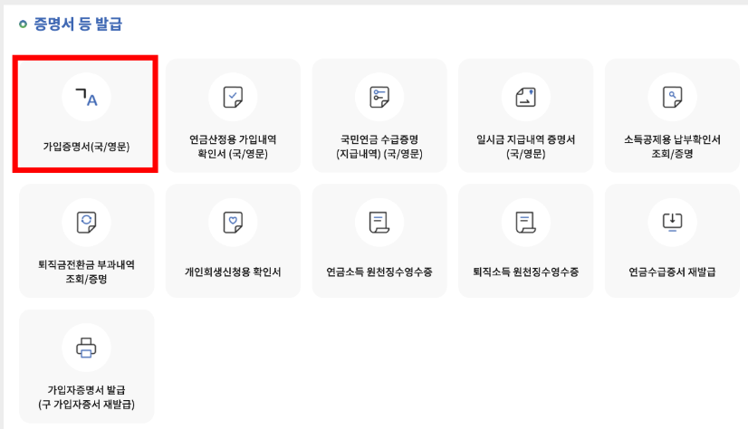 → 하위 메뉴에서 ‘가입증명서 발급’ 선택