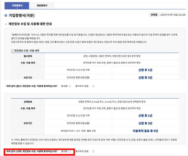 - 전자증명서: 인증서 제출용