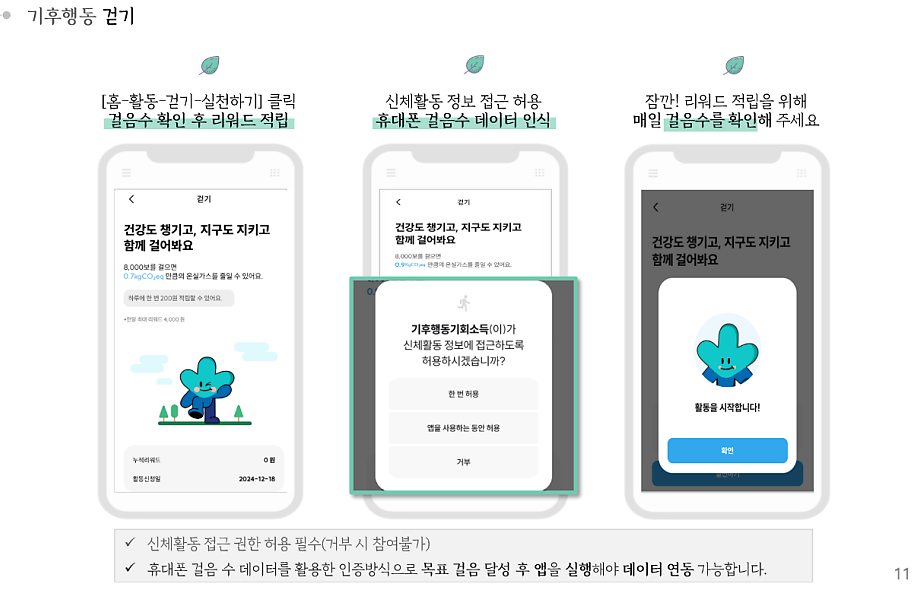 | 걷기 실천 | 하루 8,000보 이상 | 4,000원/월 |