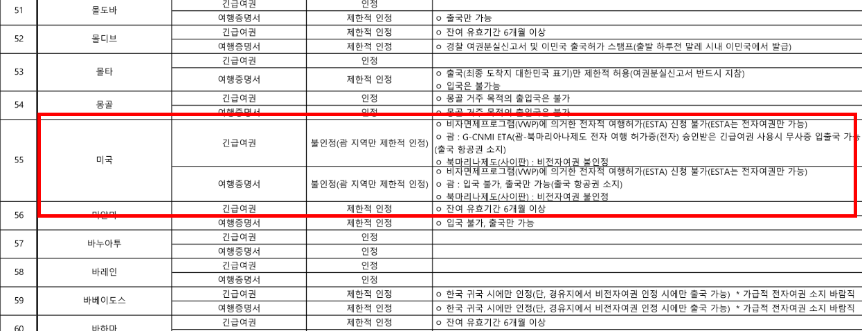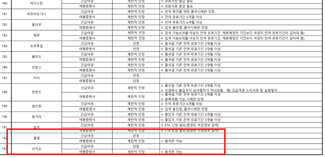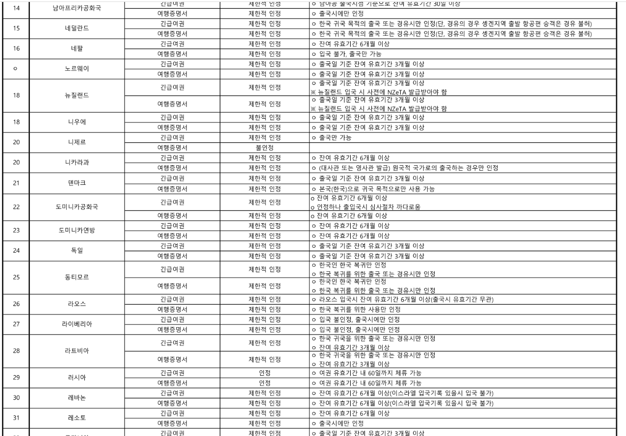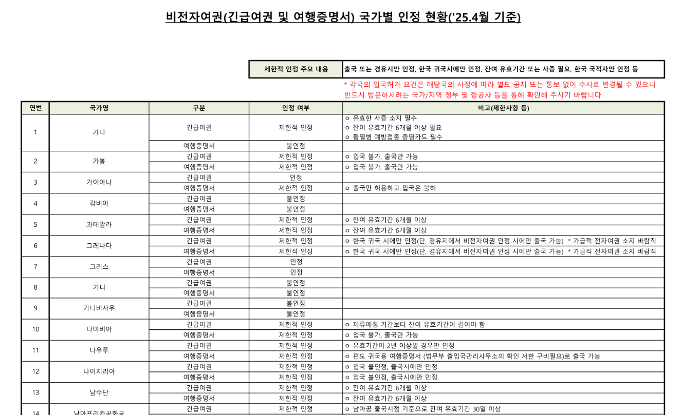 → 긴급여권은 일부 국가에서 입국 불가