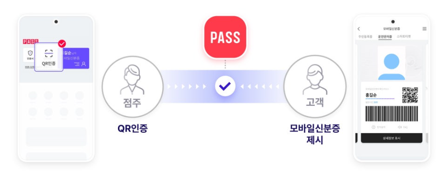 공공기관, 병원, 편의점, 렌터카, 투표소 등에서 신분 확인이 필요할 때 PASS 앱이나 모바일 신분증 앱을 실행해 제시하면 되죠.