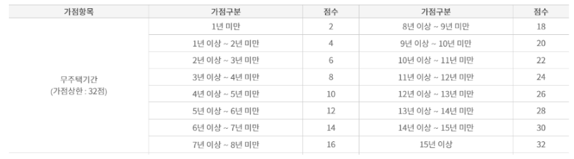 📌 총 84점 만점이며, 이 중 무주택 기간은 최대 15년 이상이어야 만점을 받을 수 있습니다.