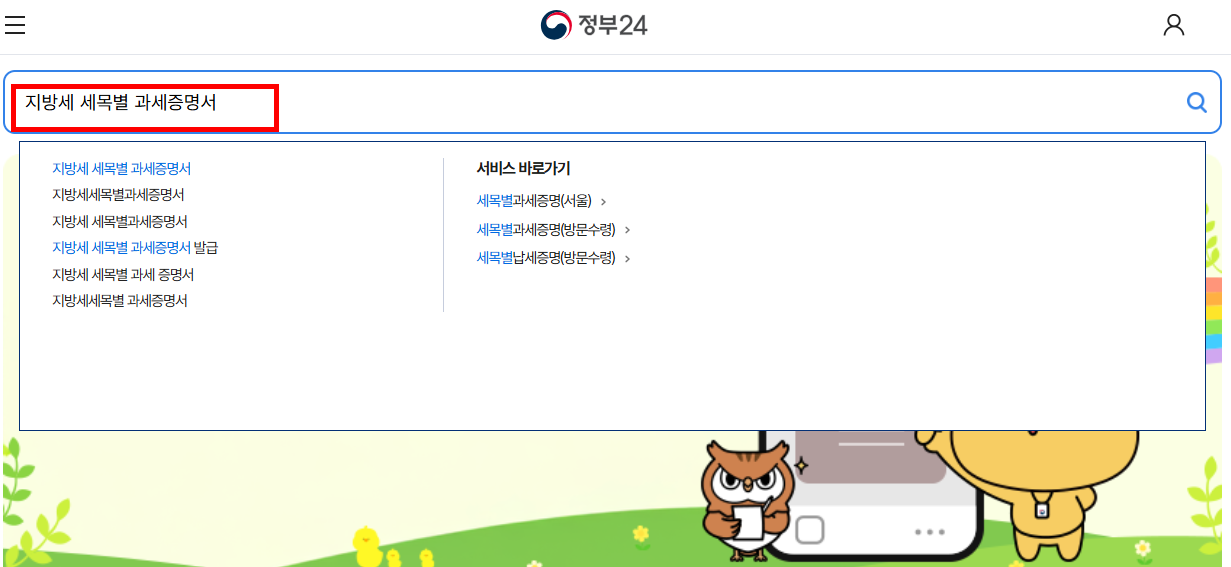 👉 지방세 세목별 과세증명서