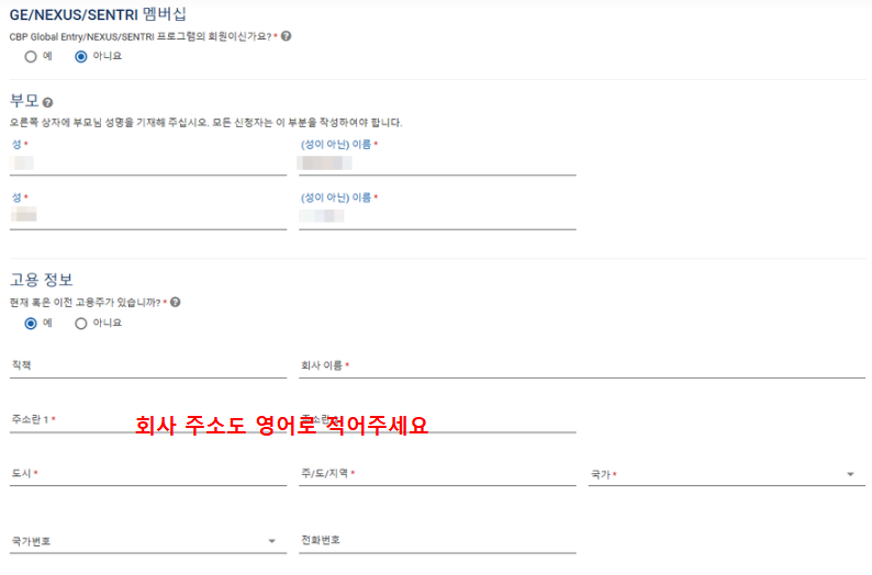 ✅ 미국 내 연락처 정보는 내가 머무를 호텔이나 숙소, 지인의 집 주소 등을 적으면 됩니다
