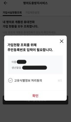 → 내 명의로 휴대폰 신규 가입, 번호이동, 명의변경 등을 사전 차단하는 서비스입니다.