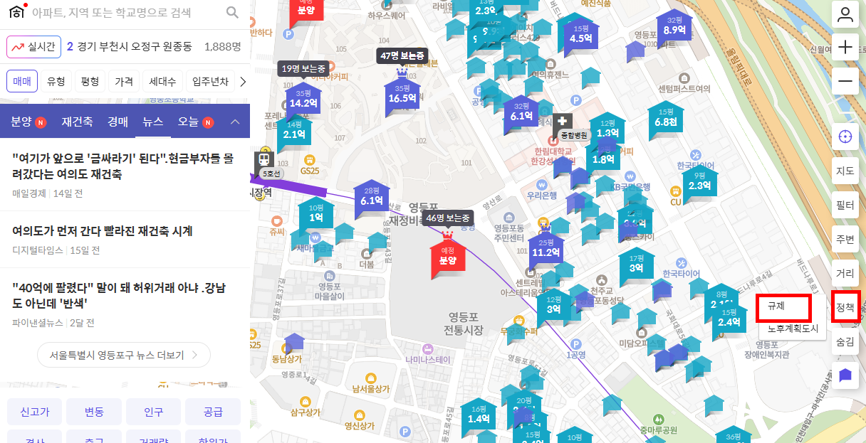 - 원하는 지역 검색 → 규제 여부 표시됨