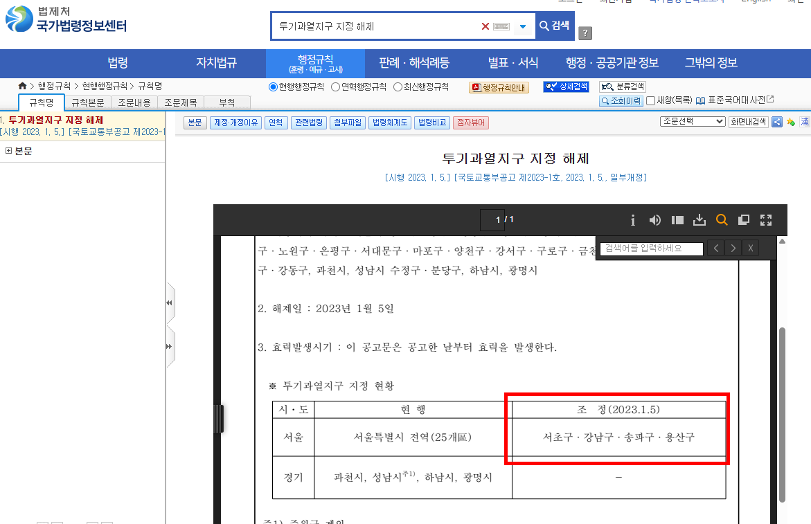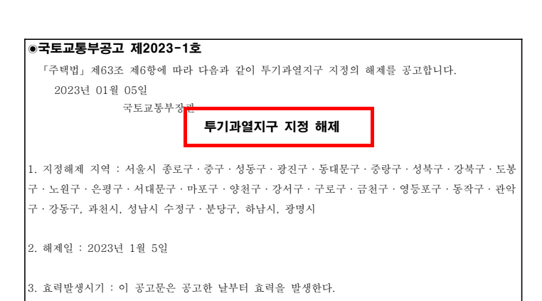 📅 기준일: 2023년 1월 5일 고시문 기준으로 서울 일부 지역을 제외한 대부분 지역은 규제 해제