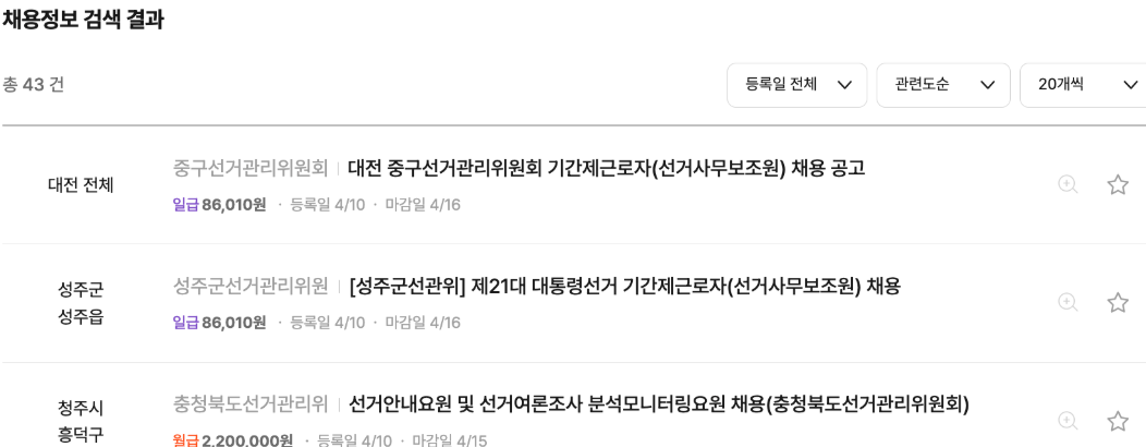 기타 모집 중인 선거 관련 직무 (서울 기준)