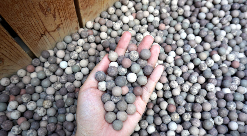 전통 온돌 스타일 공간에서 세라믹 볼 위에 누워 온열 찜질을 체험할 수 있어요.