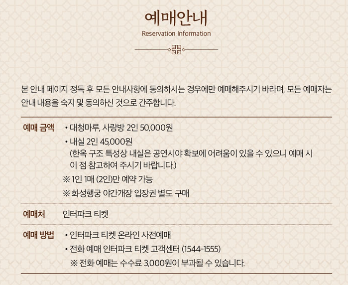 💡 중요: ‘화성행궁 입장권’은 따로 구매해야 하며, 현장 매표소에서 구입 가능해요.