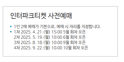 이 프로그램은 인터파크 티켓에서만 예약 가능하며, 회차별로 오픈 일정이 정해져 있습니다.