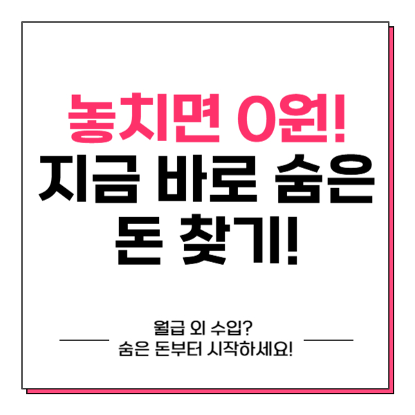 ‘숨은 돈 찾기’는 단순한 절약이 아니라, 재테크를 시작하는 의지의 표현입니다.