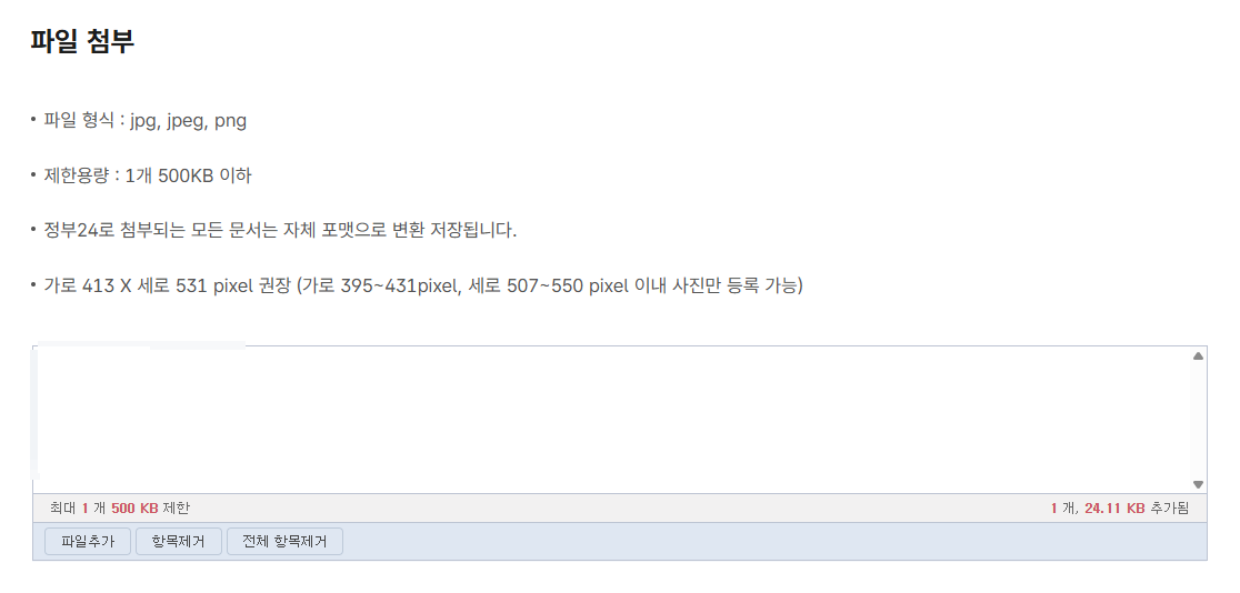 | 여권용 사진 파일 | JPEG/JPG, 6개월 이내 촬영, 흰 배경, 500KB 이하 |
