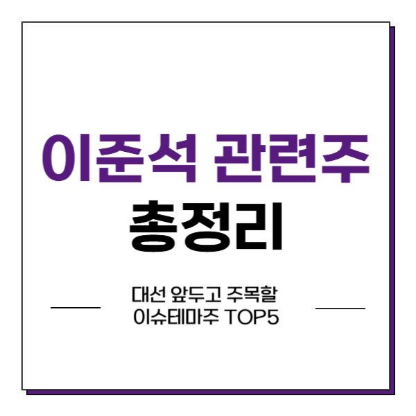 오늘은 이준석 테마로 분류되는 대표 관련주 5선을 정리해 보겠습니다.