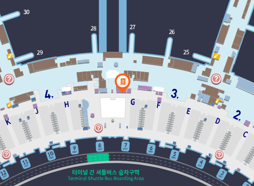 제1터미널 | 3층 G 체크인 카운터 근처 |