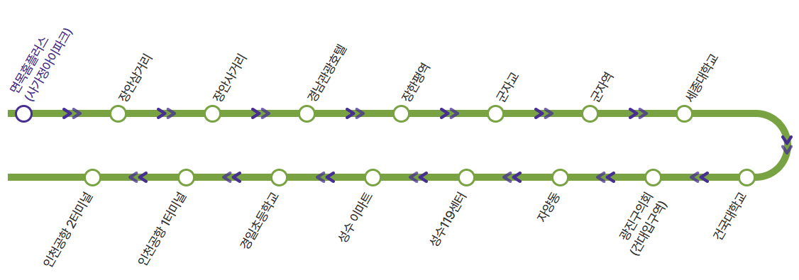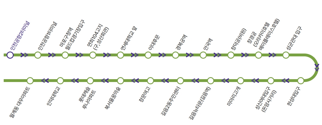 | 노선번호 | 주요 경유지 | 운영시간 | 배차간격 | 요금 |
