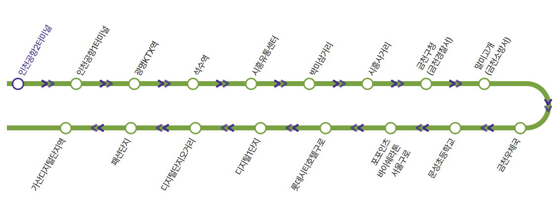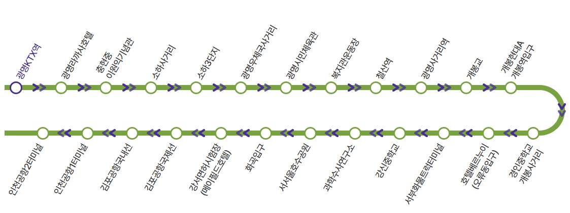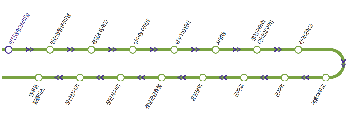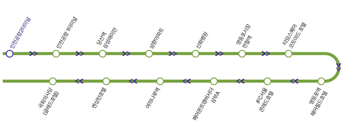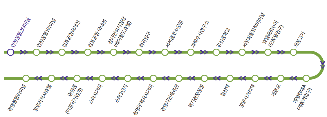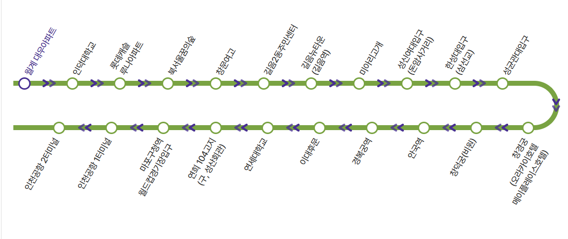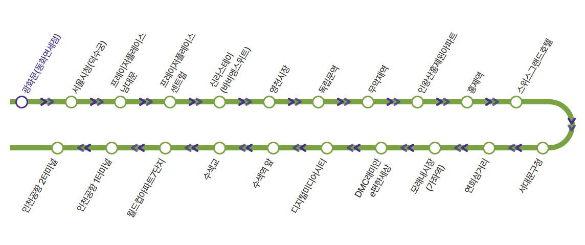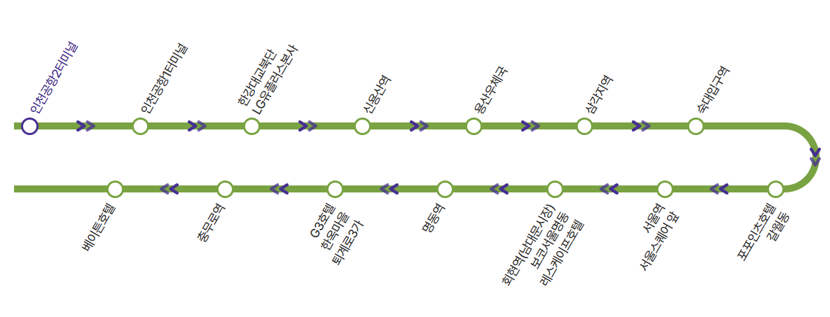 - 공항 출발 시: 매표소 또는 무인발권기 이용