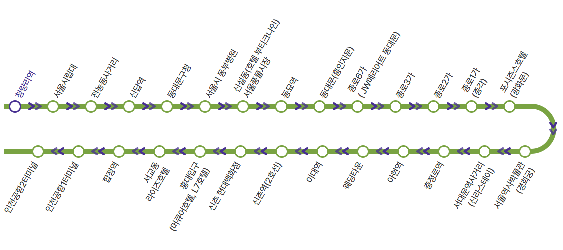 | 6001 | 동대문, 명동 | 04:30~19:50 | 15~20분 | 17,000원 |