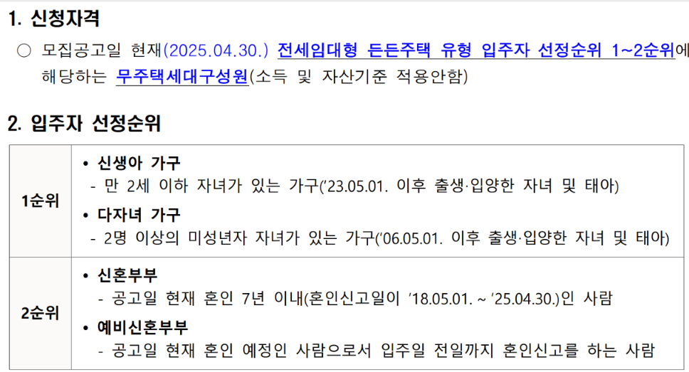 | 전세임대형 든든주택 | 300호 | 신생아, 다자녀, 신혼, 예비신혼 |