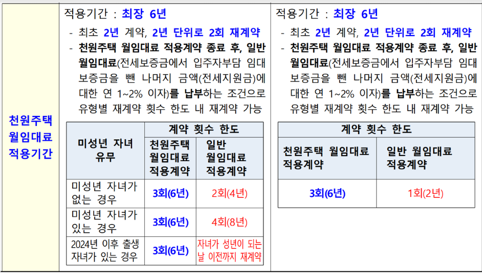 - 임대기간: 2년 + 2년 + 2년 (최대 6년 → 이후 일반 임대료로 전환)