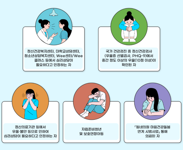 📌 우울, 불안, 스트레스, 트라우마 등으로 고민 중이라면 누구나 대상자!