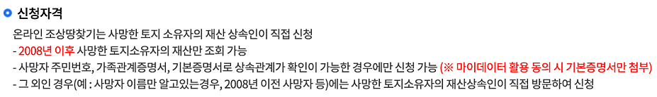 - 2008년 이전 사망자: 오프라인(방문) 신청 필수