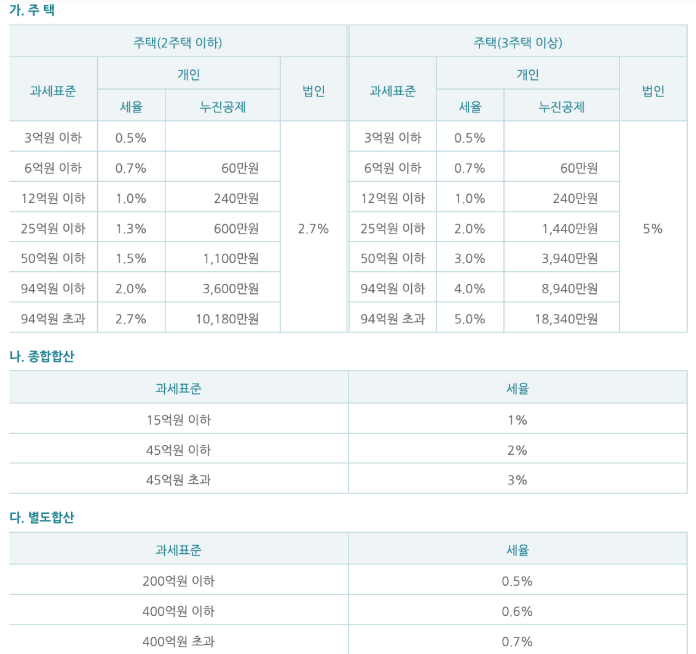 이번 포스팅에서는 종합부동산세 기준일, 과세 대상, 세율,