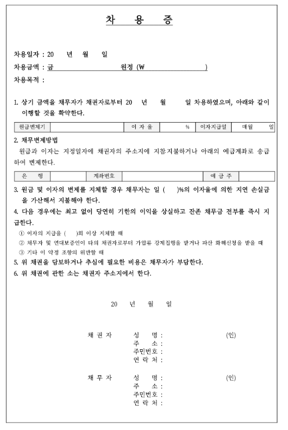 이럴 때 중요한 역할을 하는 것이 바로 차용증입니다.