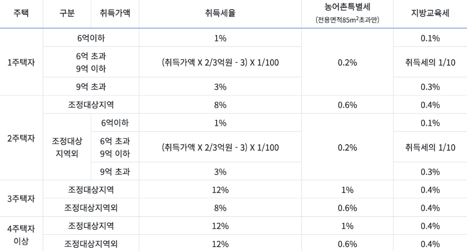 이번 포스팅에서는 1주택, 1가구 2주택, 다주택자 기준 취득세율과 함께,