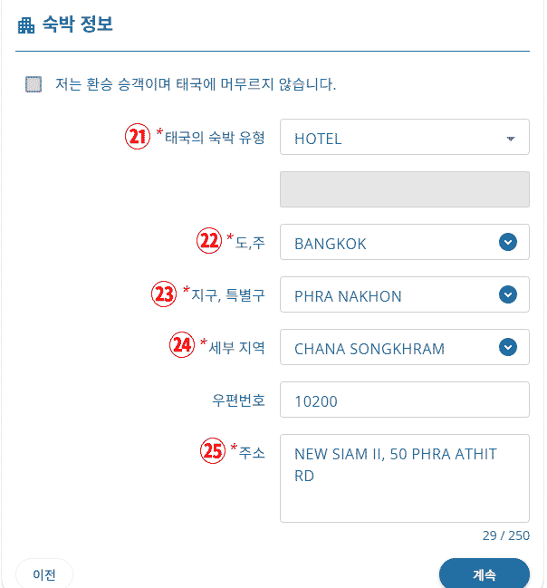 ✅ 단, 태국을 경유만 하거나(트랜짓) 특별한 국경 통행증을 사용하는 경우는 작성하지 않아도 됩니다.