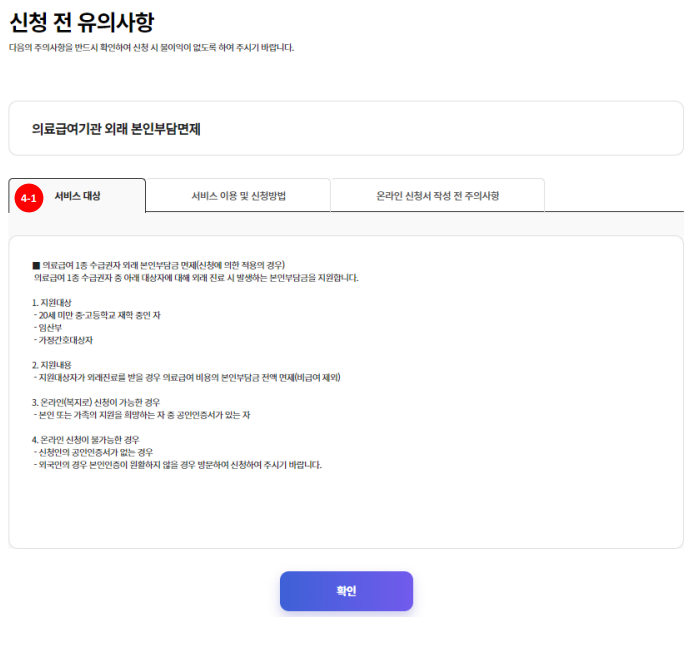 1종 조건 | 생계급여 수급자, 결핵환자 등 |