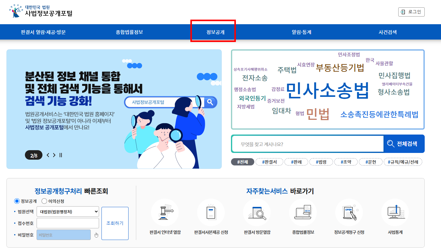 2. 판결문 열람기록 공개 청구 방법 (사법정보공개포털)