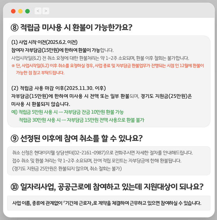 15만원 자부담 + 경기도 25만원 지원 = 총 40만원 적립