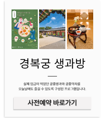 조선 왕실의 전통 다과 문화를 직접 체험할 수 있는경복궁 '생과방' 행사는 매년 조기 매진될 정도로 인기가 높은데요, 올해도 '예매권 추첨제'로 진행되니, 정확한 응모 기간과 예매 일정을 미