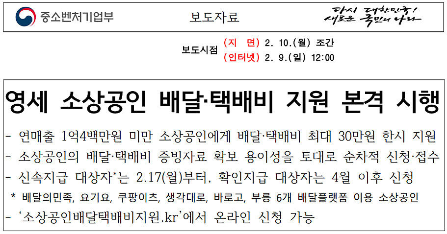 ✅ 배달과 택배 실적이 있는 소상공인을 직접 지원