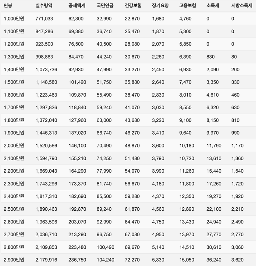 | 연봉 (세전) | 월 실수령액 (세후 기준) |