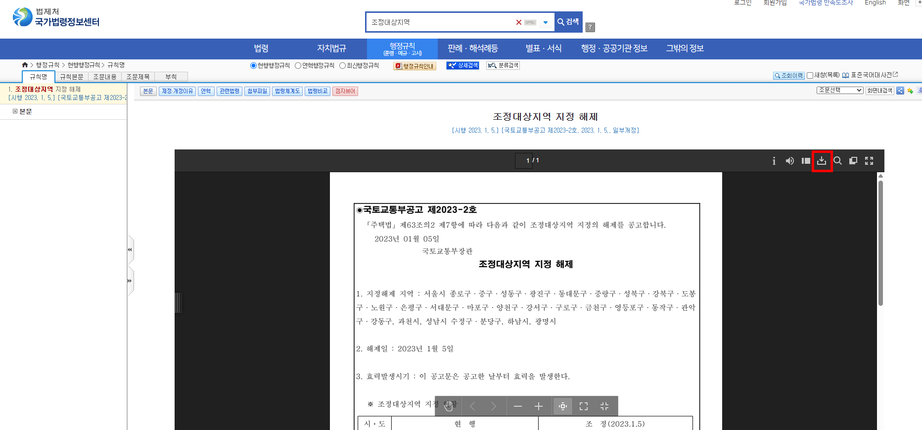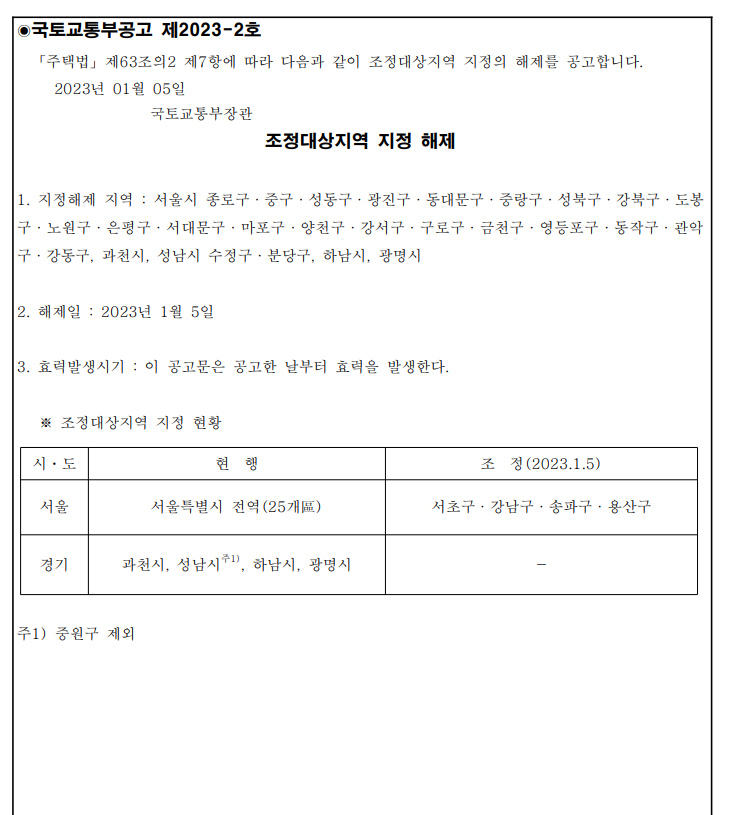 - “조정대상지역 지정/해제” 공고문 클릭