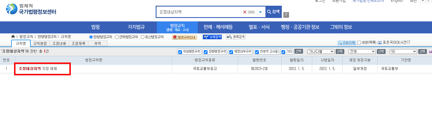 - 검색창에 “조정대상지역” 입력