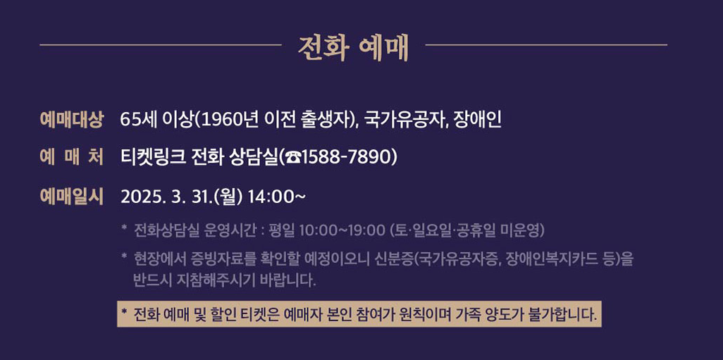 당첨자 예매기간 | 3월 26일(수) 14:00 ~ 3월 29일(토) 23:59 |