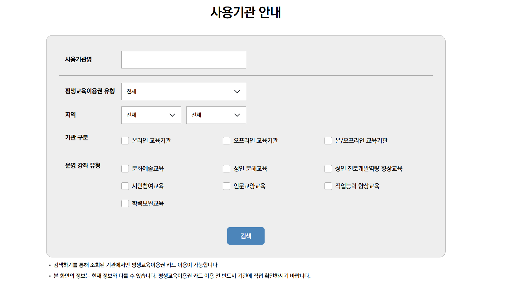 ※ 단, 국가 인증 교육기관에서 수강해야 하며, 출석률 80% 이상 미이수 시 다음 연도 이용 제한이 있을 수 있습니다.