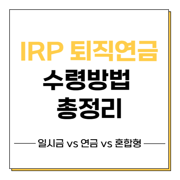 IRP 퇴직연금 수령방법에 대해 정리해드립니다.